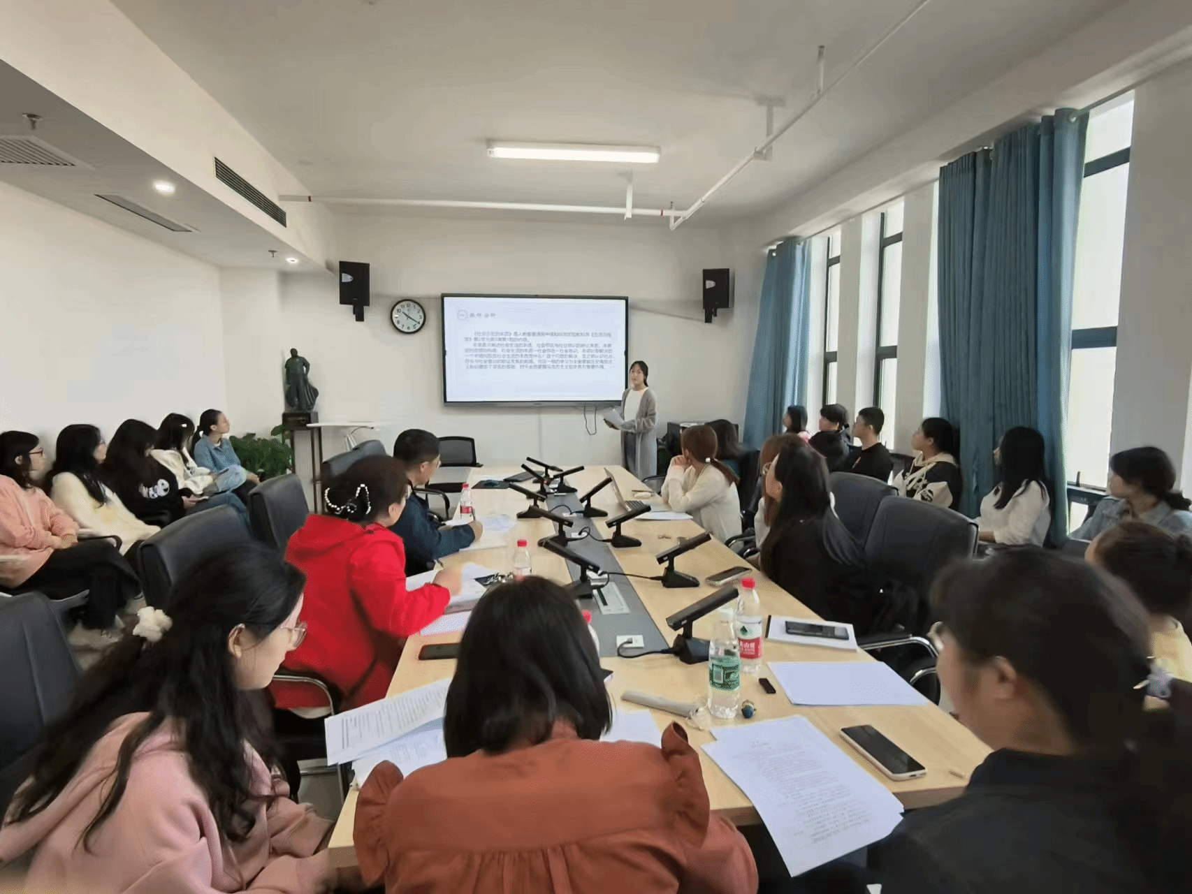 匡艳老师阐明教师教学创新大赛是锤炼教学本领、展示教学风采的重要平台。李冰老师分享了在“毛泽东与中国式现代化”主题赛事中的参赛历程与教学思考,从课程设计理念、教学内容重构、教学方法创新等方面展开详细阐述;在交流研讨环节,谭彩霞、雍容波、宋徽瑾、龙淼、刘钊、周乐秋等资深老教师纷纷发言,从不同角度对李冰老师的教学表现进行点评,并分享了自身的教学经验。