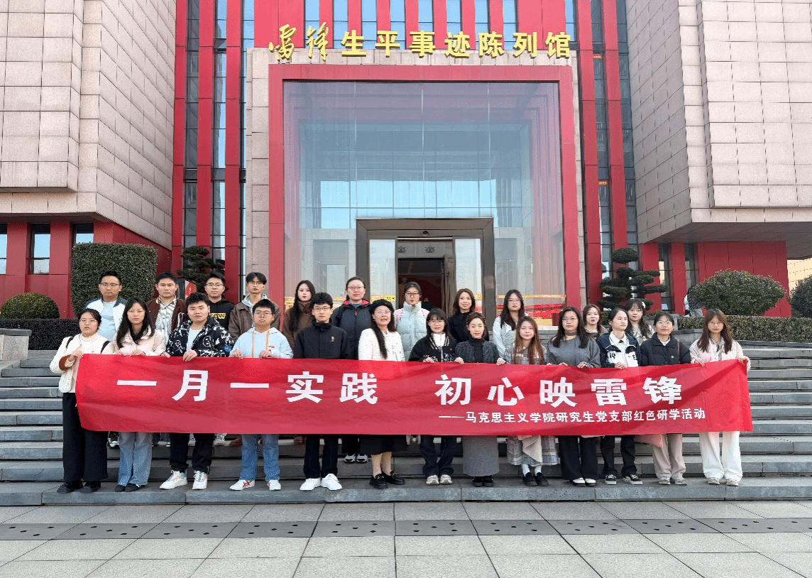 此次主题党日活动是马克思主义学院研究生党支部“一月一课一片一实践” 系列活动的重要实践,通过“实地研学 + 理论解读 + 专题研讨的三维模式,既让党员同志在沉浸式学习中深化了对雷锋精神的理解,更明确了马理论学科视角下传承践行雷锋精神的实践路径。活动有效提升了支部成员的理论素养与实践能力,为培养“懂理论、善实践、有担当”的新时代马理论青年奠定了坚实基础。