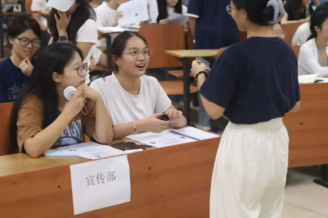 面试环节作为招新核心,重点考察新生的综合能力与岗位适配度。应聘者围绕个人优势、对团学会工作的认知及未来规划展开阐述,表达了参与学生工作、服务同学的意愿。各部门负责人结合岗位职能提问,同步记录新生表现,并针对其疑问给予反馈,既确保了选拔的专业性,也为新生提供了了解团学会的渠道。
