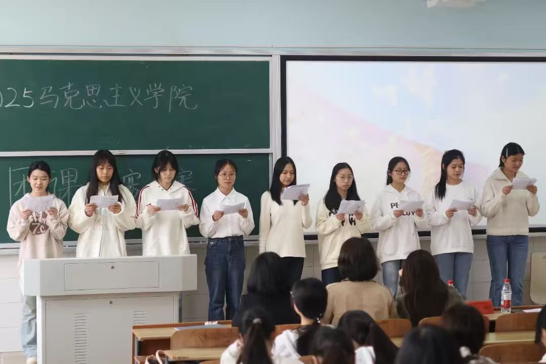 为深化红色文化育人实效,引导青年学子从历史中汲取奋进力量,11月4日下午,马克思主义学院“铭记历史,开创未来”精品团课大赛复赛在怀中楼南栋302教室成功举办。学院党委副书记胡英、学工办主任于澎、分团委书记刘艳霓、专职辅导员高爱枝受邀担任评委,与现场学子共同见证这场兼具思想深度与青春活力的团课大赛。