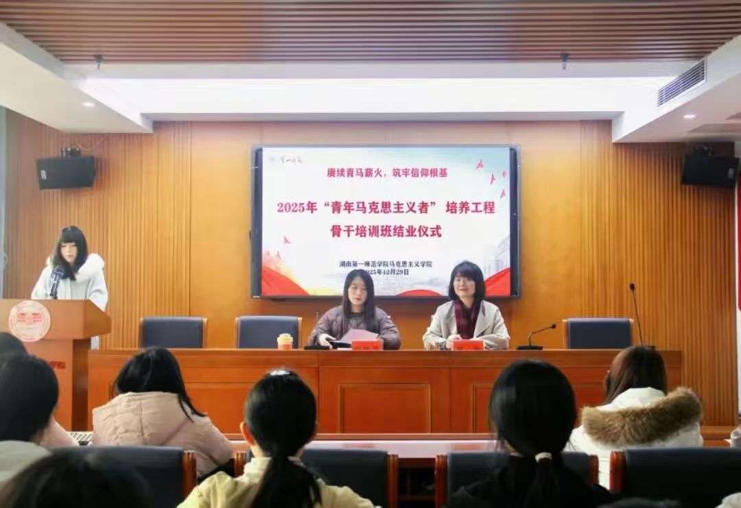为全面总结培训成果,集中展现学员成长风采,进一步激励广大学生干部坚定理想信念、勇担时代使命,12月29日,马克思主义学院在百熙楼1013会议室举行“青马工程”骨干培训班结业仪式。学院党委副书记胡英、分团委书记刘艳霓出席活动,仪式由阳彩怡同学主持。