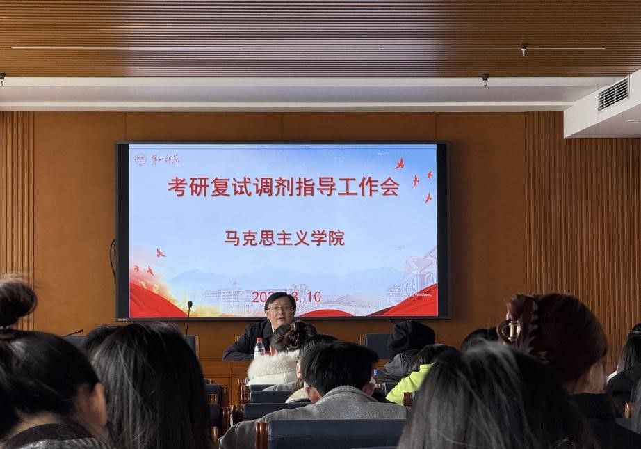3月10日下午,马克思主义学院在百熙楼1013会议室召开2026届毕业生考研复试调剂指导工作会。陈明院长与考研学子面对面,讲政策、传经验、送关怀,勉励大家在冲刺阶段稳住心神、科学应对。