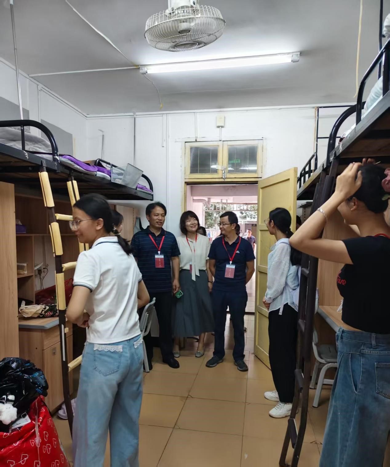 9月13日下午,马克思主义学院党委书记曾玉华、院长陈明,副书记胡英,携分团委书记刘艳霓及辅导员高爱枝、刘哲、姚江云一行,走进学生寝室,为入学新生送上关怀与指引。在寝室交流中,领导老师与新生亲切交谈,详细询问其住宿条件是否适应、入学以来的感受,以及初入校园的适应情况,让新生感受到学院的温暖。同时,老师们鼓励新生多与同学加强交流,尽快融入新集体,共同营造文明和谐的公寓氛围;并贴心告知,若在校园生活中遇到疑问,可随时向学生干部咨询,有需求也可直接与辅导员沟通,为新生解决生活与学习上的后顾之忧。最后,领导老师勉励全体新生,要以积极的姿态投入大学生活,树立远大理想,在学业与实践中不断提升综合素质,努力实现个人成长目标。(一审:刘艳霓 二审:胡英 三审:曾玉华)