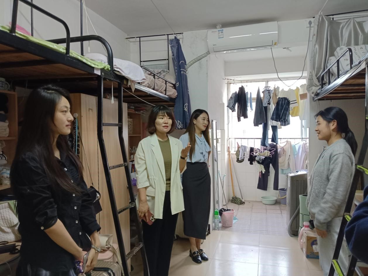11月12日,马克思主义学院党委副书记胡英带领辅导员深入学生宿舍走访,了解宿舍内务情况,排查消防安全隐患,督促同学们爱护工作卫生,共建文明寝室。并深入了解同学们学习情况,鼓励同学们勤练三笔字,提升师范生技能;以及加强英语四六级备考,全面提升个人综合素质。( 一审:刘艳霓 二审:胡英 三审:曾玉华)
