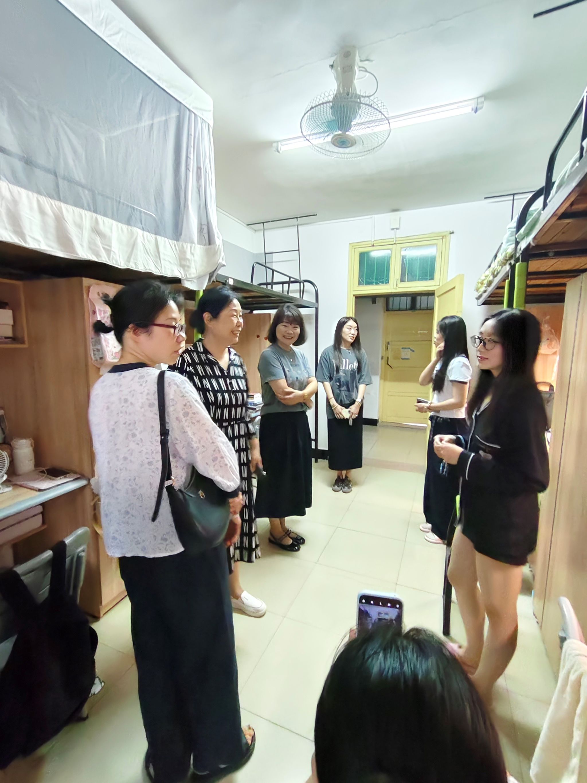 9月7日下午,马克思主义学院党委副书记胡英、副院长胡慧娥、分团委书记刘艳霓、辅导员高爱枝来到寝室进行视察,了解学生到校情况,确保开学报到工作有序落地;随后着重叮嘱同学们,需尽快调整状态回归学习节奏,按照既定计划稳步推进学业,在知识积累中提升综合素质。同时,还向学生普及安全知识,强化大家的安全防范意识。最后,领导老师对同学们送上新学期祝福,鼓励大家以崭新面貌投入学习生活,在新的学期里锐意进取、不断进步,收获成长与突破。(一审:刘艳霓 二审:胡英 三审:曾玉华)
