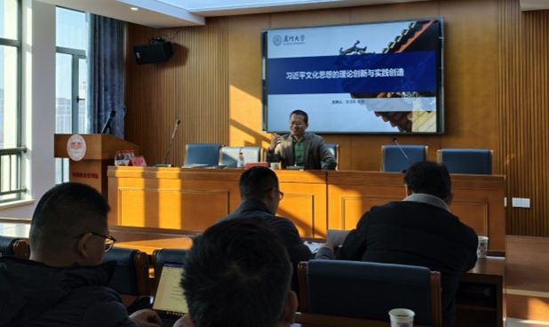 1月14日上午,厦门大学新闻传播学院教授、博士生导师谢清果教授应邀来院讲学,主讲内容为“习近平文化思想的理论创造与实践创造”,讲座由我院党委书记曾玉华主持,学院部分教师及全体研究生参会。