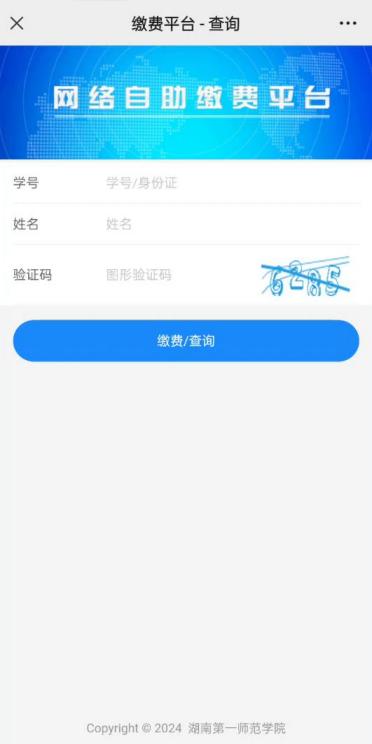 3.进入缴费平台,输入“ 学生信息 ”(身份证号、姓名、验证码),点击“缴费/查询 ”。