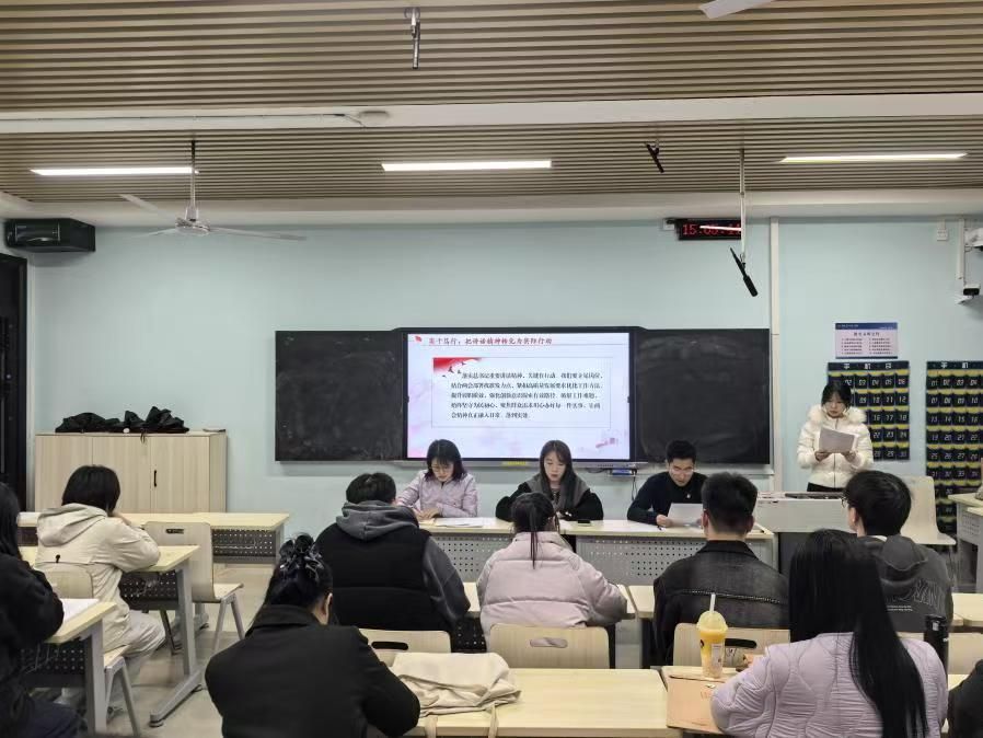 为推动理论学习与实践育人深度融合,党支部开展了主题为“逐梦新学期,奋进正当时——‘十五五’规划:大学生的青春征程”的宣讲实践活动。宣讲员们围绕时代大势、使命担当、本领锤炼、家国情怀四个方面,结合前沿科技、产业升级、乡村振兴等内容,引导同学们将个人成长融入国家发展大局。大家在交流中深化理论认知、强化责任意识,切实把学习成果转化为奋进新征程、建功新时代的青春行动,为投身“十五五”建设、服务国家发展筑牢坚实思想根基与行动自觉。
