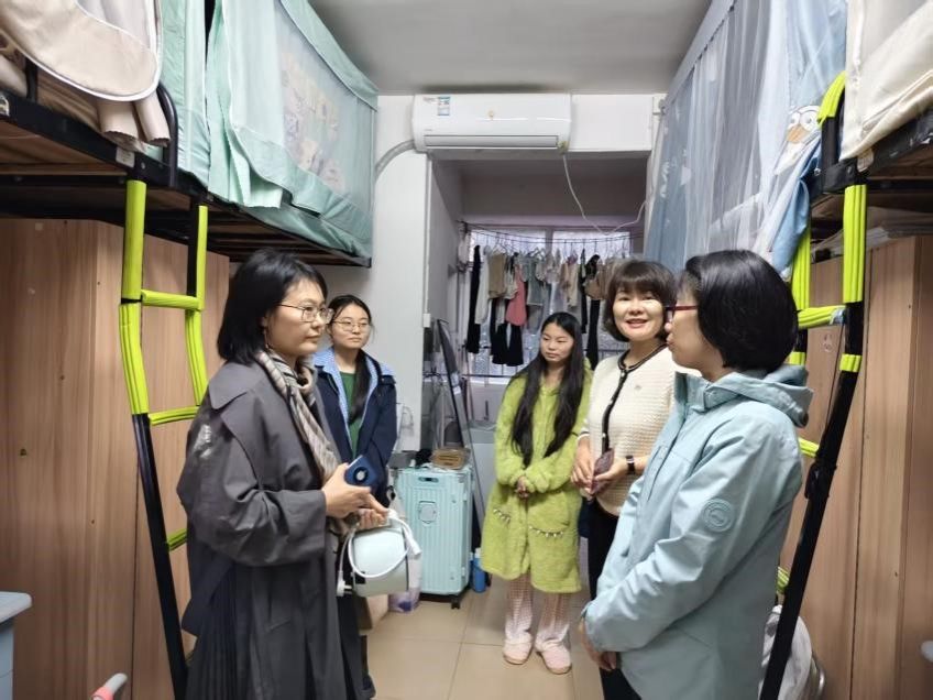 11月5日下午,马克思主义学院党委副书记胡英、副院长胡慧娥与辅导员高爱枝走进学生寝室开展实地走访工作。在寝室走访过程中,领导老师们始终将学生身体健康放在首位,耐心询问学生近期生活与学习状态,反复叮嘱大家遇到困难或问题时要及时与老师沟通,切勿独自承担。针对寝室生活细节,老师们细致提醒学生要定期开窗通风,保持室内空气流通与环境卫生,同时合理精简个人物品,营造整洁有序的居住空间;鼓励学生积极参与校园文化活动,平衡学习与生活,丰富课余时光。此外,安全问题是此次视察的重点内容。老师们着重强调宿舍安全规范,明确要求学生严禁使用大功率电器,从源头上杜绝消防安全隐患;并现场指导学生下载防诈骗App,协助大家开启预警功能,提升防范电信网络诈骗的意识与能力,切实为学生的校园生活筑牢安全屏障。